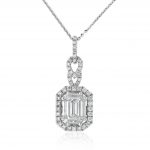 The mix of diamond cuts makes this pendant truly special. The emerald cut sits proudly at the centre, framed by baguettes and a dazzling halo of round brilliant diamonds. Together, they create a piece that’s full of depth, fire and light.